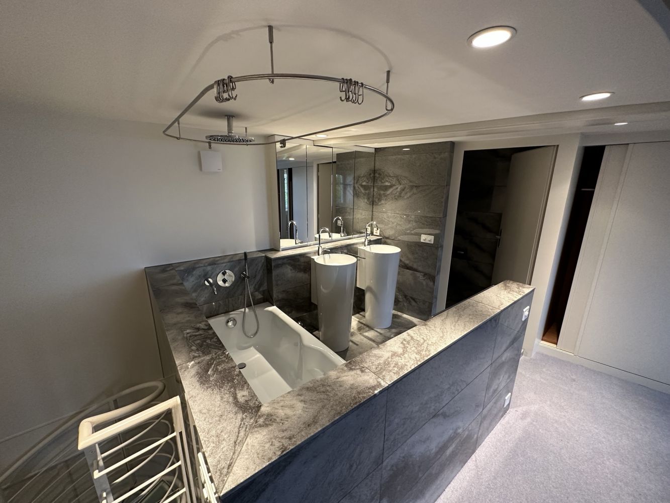 Nach den Gewitterereignissen im Juni 2021 kamen die Auftraggeber auf uns zu, da im Dachgeschoss Wasser eingetreten war und die Hagelkörner an der Westfassade einige Fenster beschädigt hatten. Auf Grund eines Mieterwechsels der Wohnung im OG-DG, wurden zudem Überlegungen angestellt eine Anpassung bei einer Nasszelle vorzunehmen.