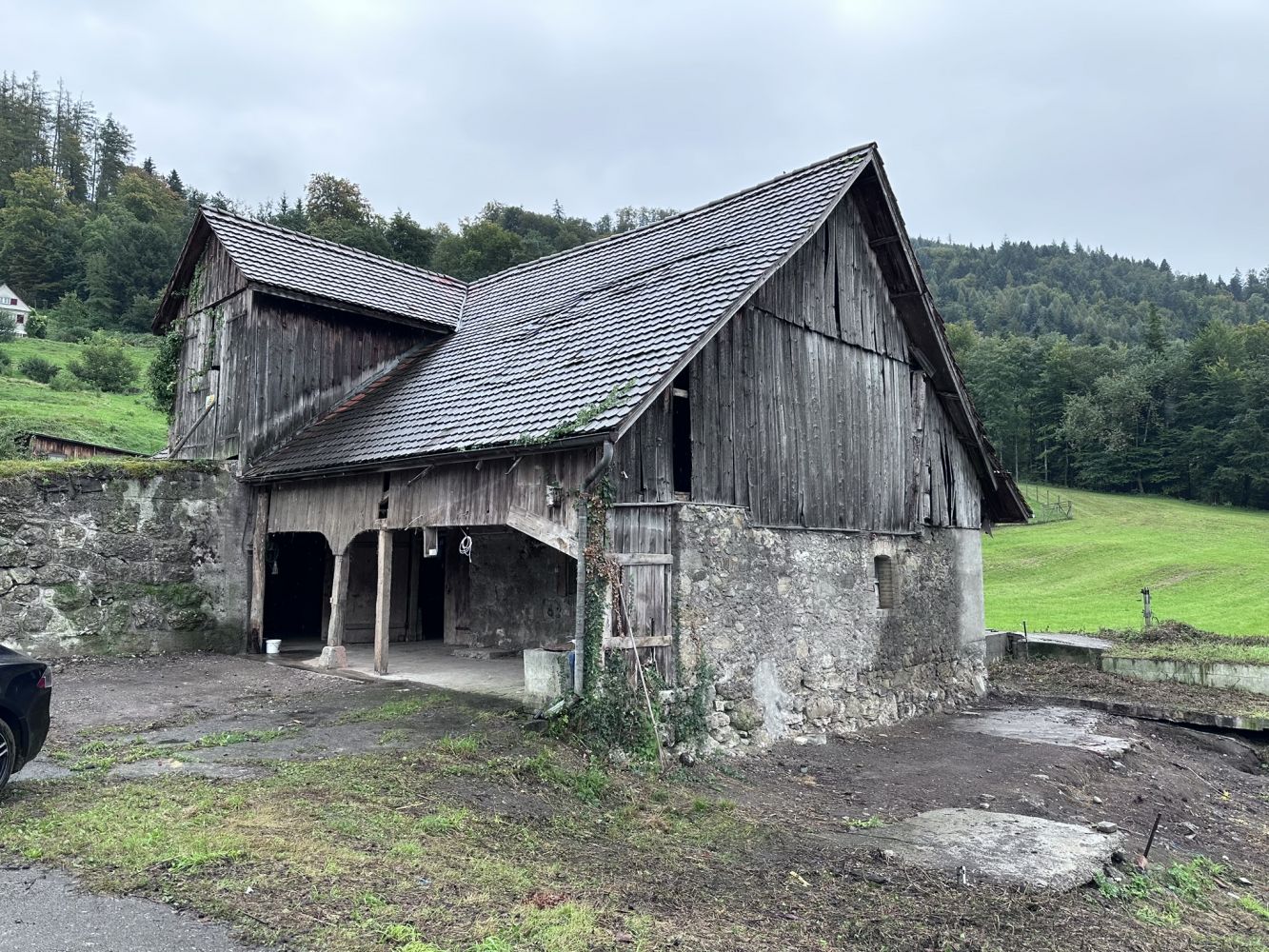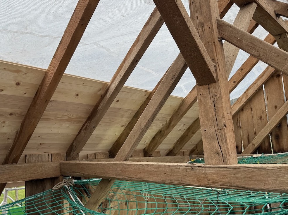 Die bestehende Scheune wird instand gestellt. In einigen Bereichen ist das Holztragwerk marode und nicht mehr lange tragfähig. Teilbereiche der Fassade müssen ebenfalls ersetzt werden. Neu wird das Dach mit Solarziegeln eingedeckt. Die Dachkonstruktion muss dem entsprechend mit einer Holzschalung ertüchtigt werden.