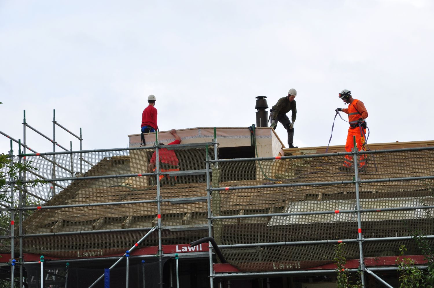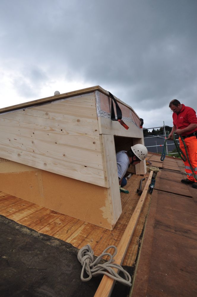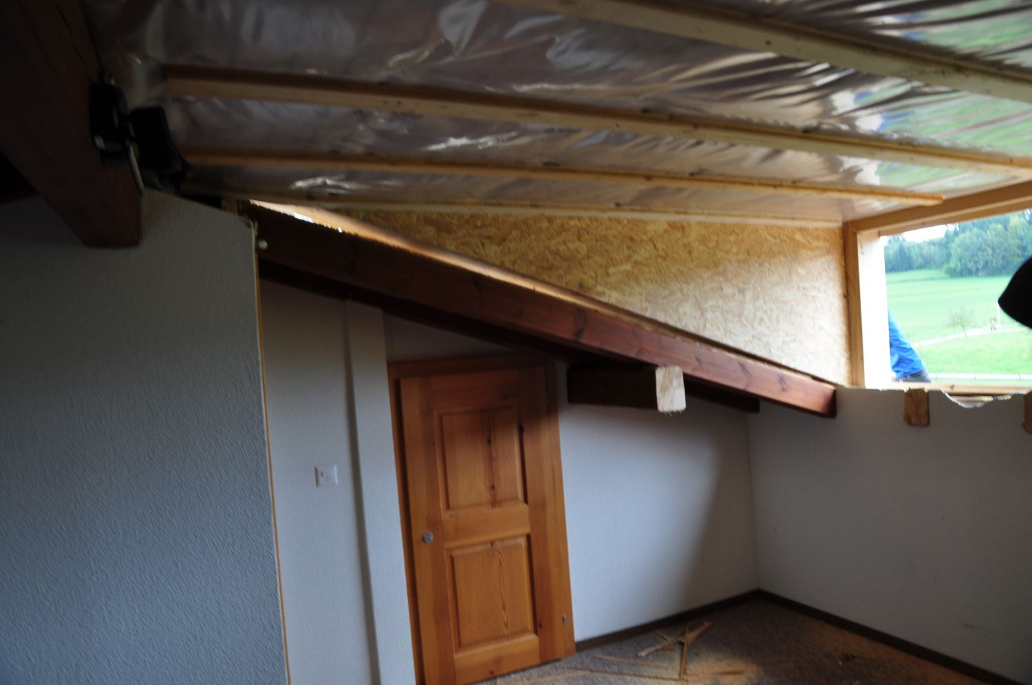 Dachsanierung Marderschaden, Wärmetechnische Dachsanierung, Aufbau Dachlukarne, Aussenzugang zum Technikraum im Keller