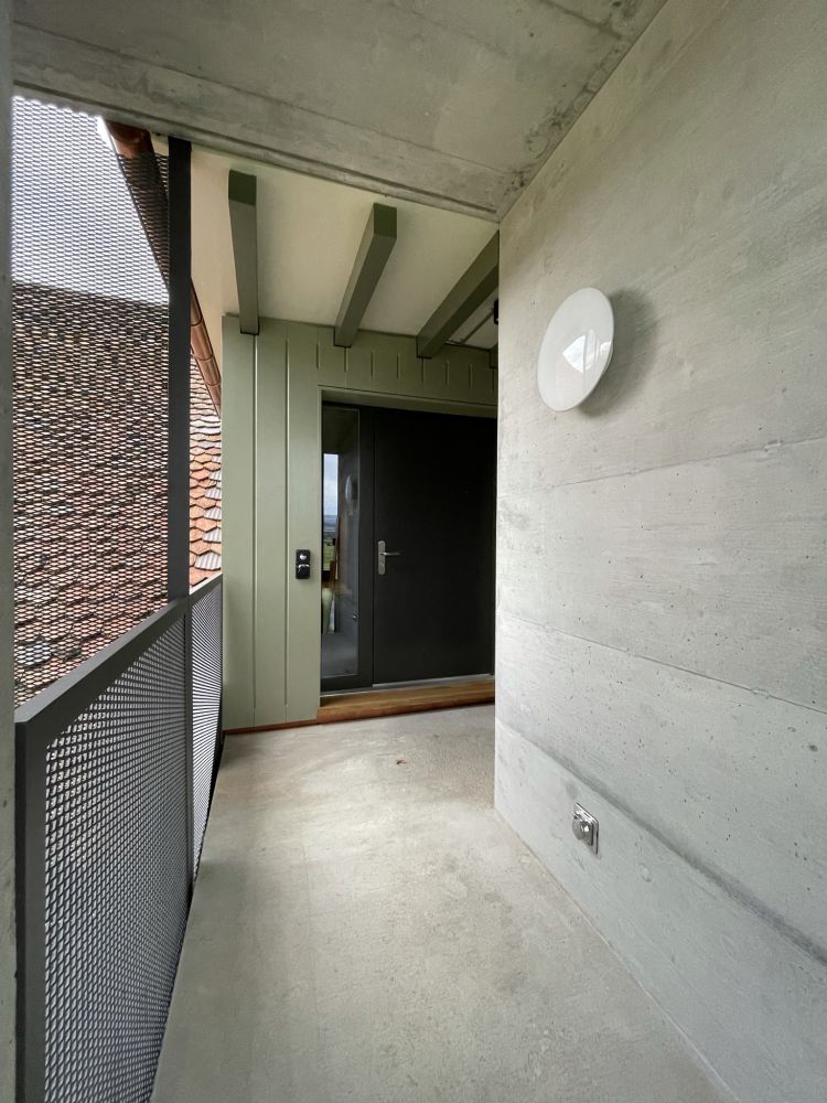 Die Dachwohnung wird mit einem Lift- und Treppenanbau erschlossen vom Keller bis Dachgeschoss.