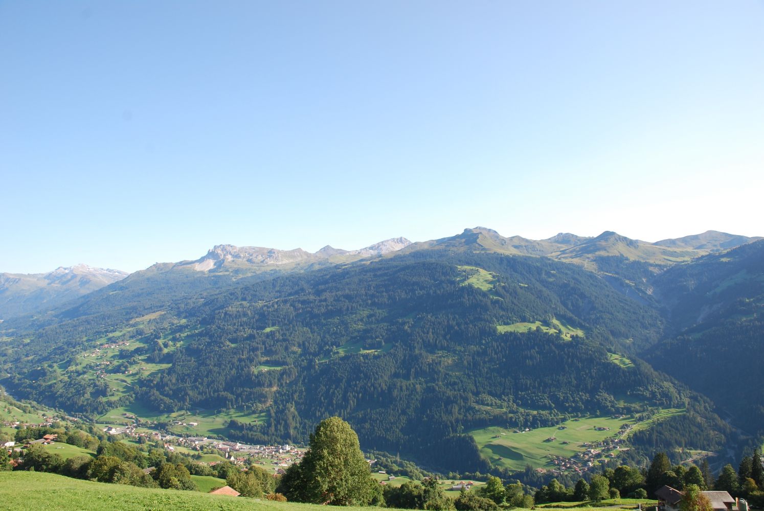 Das Grundstück liegt auf einer Sonnenterasse über dem Prättigau.