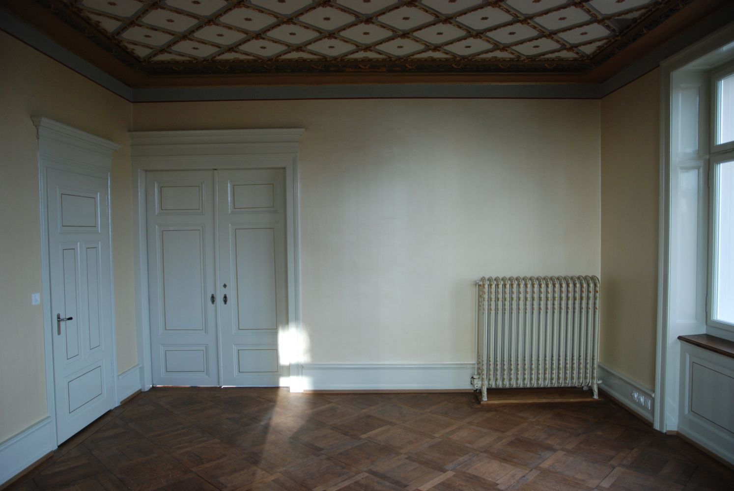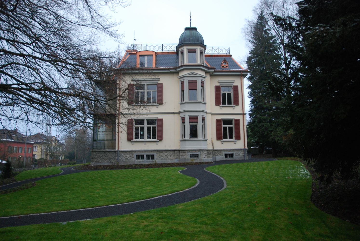Die Villa aus dem Jahr 1895 wurde von der Familie Stadlin erbaut und während über hundert Jahren bewohnt. Nach einer kurzen Zeit als Musikschulprovisorium wurde die Villa an die Ernst Göhner Stiftung verkauft. Dies führte zu einer Nutzungsänderung in ein Bürohaus. Mit dieser Nutzung waren keine strukturellen Veränderungen am Gebäude notwendig. Durch ein gezieltes Erschliessungskonzept wurde auch die Interventionstiefe klein gehalten. Bei diesem Umbau geht es in erster Linie darum, die vorhandenen Qualitäten zu erkennen und wieder sichtbar zu machen. Dadurch entstehen starke Räume, welche zusammen mit der Nutzung eine zukunftsgerichtete Lösung für den Weiterbestand des kulturellen Erbes bieten.