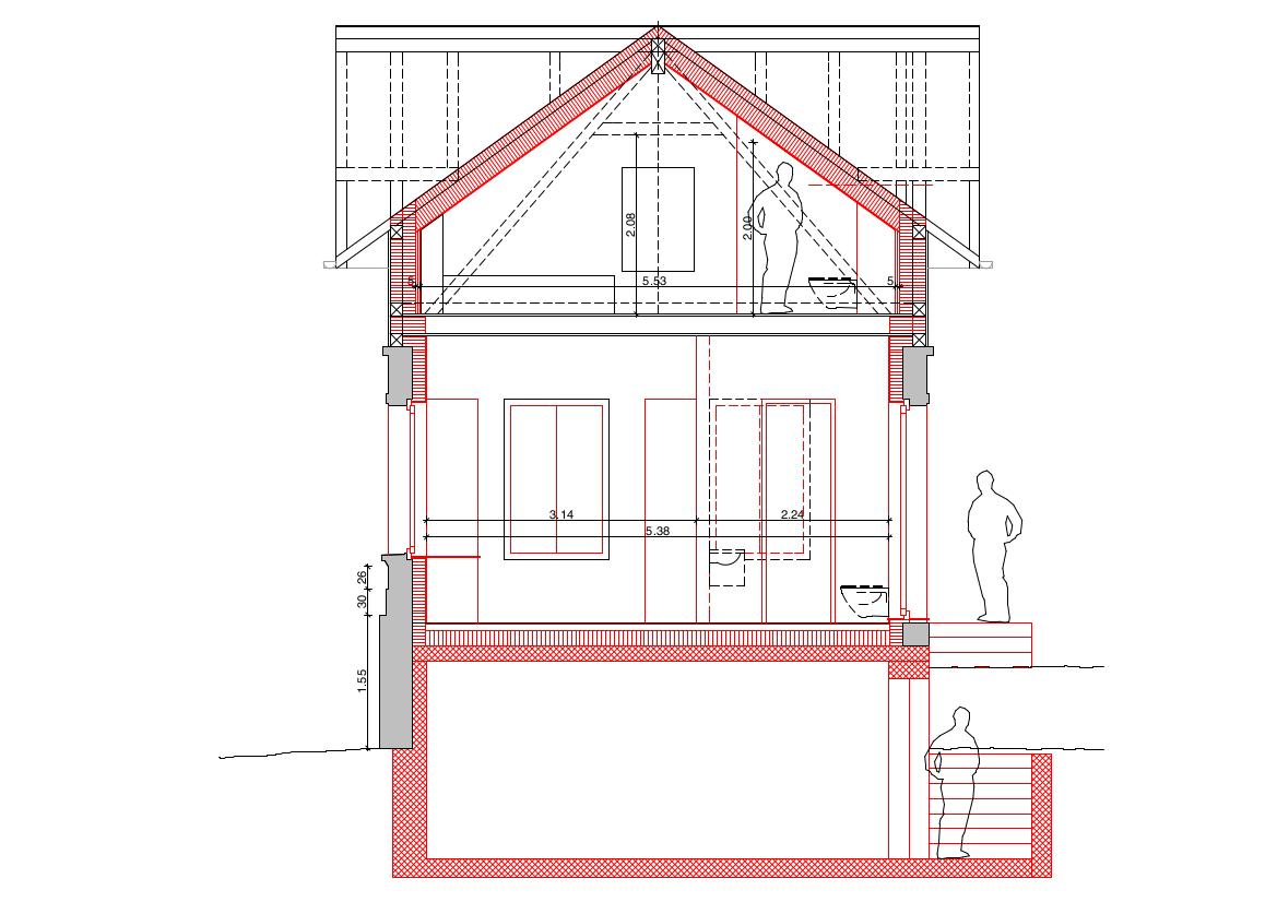 Ziel des Umbaus ist es, dieses Gebäude aktiv zu nutzen und zu einer Wohnung für eine bis zwei Personen auszubauen. Die bestehenden Qualitäten sollen für den neuen Wohnraum genutzt und gezielt in Szene gesetzt werden.